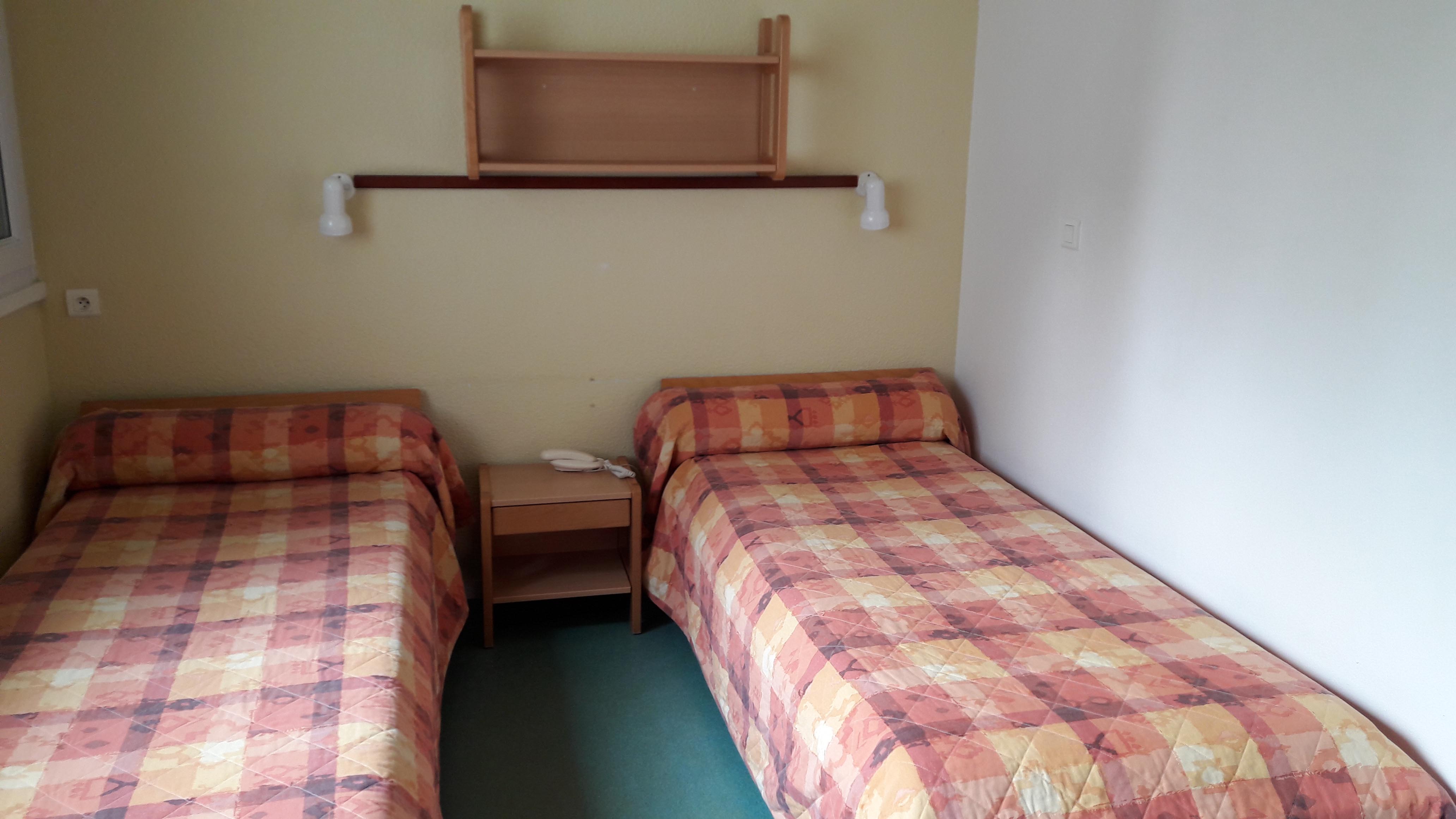 Chambres individuelle ou avec lit superposé équipées de bureau, penderie et sanitaires (lavabo avec miroir et douche). Les toilettes sont par bloc d’étage et communs.